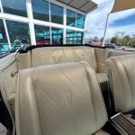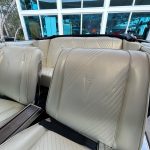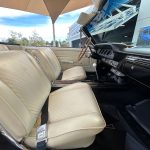 Slipping into the cabin is like stepping into a time capsule. The white interior provides a striking contrast to the dark blue exterior, enhancing the car’s aesthetic appeal while exuding an air of sophistication. Every detail within has been carefully attended to during the restoration process, from the seats to the dashboard, ensuring that the interior looks and feels as pristine as the day it rolled off the production line.
