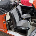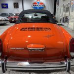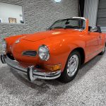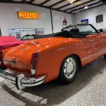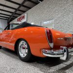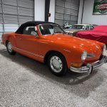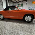 This 1974 Volkswagen Karmann Ghia Convertible is a beautifully refreshed and low-mileage example of one of the most elegant and timeless European-inspired classics of the 1970s. Acquired by the selling dealer in 2025 following a refurbishment under prior ownership, it wears a vibrant Amber (L20E) finish complemented by a fresh black power convertible top with heated rear glass window and matching black top boot. The iconic Karmann Ghia styling shines through with its smooth, flowing lines, chrome-finished bumpers with overriders, bright trim accents, dual side mirrors, and a vented decklid — all contributing to its unmistakable blend of Volkswagen reliability and Italian coachbuilt charm. The body presents very cleanly overall, with the refurbishment delivering a bright, attractive appearance suitable for enjoyable driving or local shows.