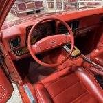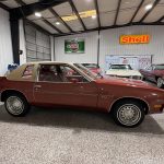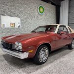 This 1975 Chevrolet Monza Towne Coupe V8 is finished in factory-correct Firethorn Metallic (code 36L) with a contrasting Buckskin vinyl roof (code 64T), delivering one of the most attractive and upscale-looking colour schemes offered on Chevrolet’s premium subcompact coupe. The exterior features body-side and wheel-arch moldings, sport mirrors, round headlights, chrome bumpers and trim that elevate its presence beyond the base Vega platform. It rides on 13-inch steel wheels with hubcaps and trim rings, fitted with 185/80 Maxxis narrow-whitewall tires, while the optional sport suspension and variable-ratio power steering provide sharper, more responsive handling than standard models. Power-assisted front disc brakes (rear drums) deliver confident stopping power for the era. Minor touched-up paint blemishes are present, but the body remains solid and straight with good panel alignment — a well-traveled yet carefully maintained survivor originally delivered to Usem Chevrolet in Austin, Minnesota.