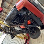 Power is supplied by the optional 4.3-liter (262ci) V8 with two-barrel carburetor, factory-rated at 110 horsepower and 195 lb-ft of torque — a significant upgrade over the base four-cylinder that gives the Monza noticeably stronger performance and smoother refinement. Mated to a Turbo Hydra-Matic three-speed automatic transmission, it sends power to the rear wheels in classic RWD layout, enhanced by a Flowmaster muffler for a deeper exhaust note and a black underside coating for added protection. This drivetrain setup transforms the lightweight Monza into a more engaging and usable cruiser with genuine V8 character, far more desirable than the common inline-four versions.