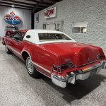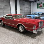 This 1976 Lincoln Continental Mark IV is a striking Lipstick Luxury Group example finished in vibrant Lipstick Red (paint code 2U) with white pinstripes and a matching white vinyl roof, creating one of the boldest and most eye-catching color combinations of the mid-1970s personal-luxury era. Signature features include hidden headlights, opera windows, power-operated sunroof, cornering lights, dual exhaust outlets, remote-adjustable side mirrors, power-telescoping antenna, and 15-inch forged aluminum wheels wrapped in 235/75 Hankook Optimo H724 thin-whitewall tires. Power-assisted disc brakes on all four corners and variable-ratio power steering make this large coupe surprisingly manageable despite its size.