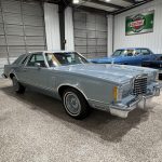 This Canadian-market 1978 Ford Thunderbird Diamond Jubilee Edition is finished in Diamond Blue Metallic (code 3E) with matching blue vinyl roof, featuring opera windows, hideaway headlights, cornering lights, dual side mirrors, bright trim, and 15″ alloy wheels with blue accents and Cooper Trendsetter SE tires (mounted 2020) — a limited commemorative package celebrating Ford’s 75th anniversary with unique badging and trim. Power-assisted front disc/rear drum brakes and power steering provide easy handling; exterior shows excellent low-mileage preservation with minor age patina on trim.