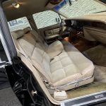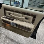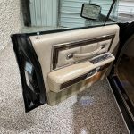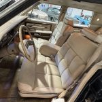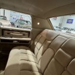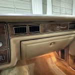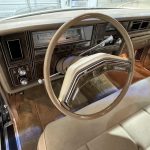 The expansive, six-passenger interior remains inviting and period-correct, featuring a power-adjustable front bench seat upholstered in rich Champagne tufted cloth, complemented by matching rear seating and trim. Loaded with factory luxury appointments, the cabin includes automatic climate control, cruise control, power-operated vent windows and locks, illuminated entry system, and an AM/FM cassette stereo — capturing the full grand American luxury experience of the late 1970s. The color-keyed steering wheel sits atop a tilt column, fronting clean horizontal instrumentation with the low-mile odometer underscoring the car’s pampered history.