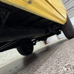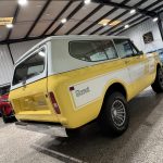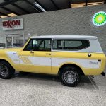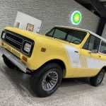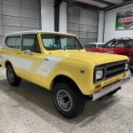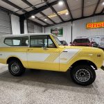 This 1980 International Harvester Scout II was refurbished under prior ownership, including refinishing the body in Saffron Yellow, repainting the removable hardtop Winter White, replacing rubber seals, overhauling the turbocharger and air conditioning, and updating suspension (body mounts, polyurethane bushings, springs, shocks). Finished with white Rallye decals, chrome bumpers/side mirrors, sliding rear windows, and styled 15″ wheels with 235/75 Michelin LTX A/T2 tires (matching spare in cargo area). Warn automatic locking front hubs, front disc/rear drum brakes, and Dana 300 dual-range transfer case provide capable 4×4 performance; frame repainted with rubberized underside coating.