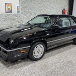 This 1987 Dodge Shelby Charger GLH-S, chassis #223 of only 1,000 units built for the final production year, has been refinished in deep black with fresh Shelby and GLH-S decals that restore its aggressive factory appearance. The exterior showcases the complete Shelby aero package — front lip spoiler, side skirts, rear decklid spoiler, rear spats, power-bulge hood with offset scoop, and remote-controlled mirrors — creating one of the most purposeful and distinctive small performance cars of the 1980s. A factory sunroof adds open-air appeal, while polished 15-inch Shelby Centurion alloy wheels fitted with older Hercules G3000V tires give it a correct period stance. Adjustable Koni dampers provide tunable handling, and front disc brakes (rear drums) deliver strong stopping power for the era. The body remains straight and clean with no accident history, reflecting careful preservation of this rare Shelby variant.