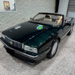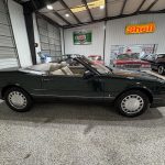 This 1993 Cadillac Allanté is a low-mileage, final-year example of Cadillac’s bold Pininfarina-styled front-wheel-drive convertible, finished in elegant Polo Green with a black power convertible soft top that includes quarter windows and a heated glass rear window. The iconic body — hand-built in Turin, Italy, and flown to Detroit for final assembly — features Twilight Sentinel automatic headlights, headlight washers, integrated fog lights, power-adjustable mirrors, a telescoping power antenna, and dual exhaust outlets. The 16-inch factory chrome wheels are fitted with Lexani tires, and the car benefits from four-wheel independent suspension, speed-dependent damping, variable-assist power steering, traction control, and four-wheel ABS disc brakes. The selling dealer notes evidence of paintwork on the doors and a 1994 Carfax entry for accident damage, but the car presents as a straight, well-kept survivor with no subsequent issues reported.