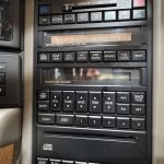 The interior is trimmed in supple Natural Beige leather with power-adjustable seats (including driver memory), contrasting upper surfaces, and a luxurious, driver-focused cabin. Equipment is comprehensive for the era: Delco Symphony Sound audio system with AM/FM cassette, automatic climate control, cruise control, onboard analog computer, power windows, and a leather-wrapped two-spoke steering wheel framing full analog instrumentation (150-mph speedometer, 6,600-rpm tachometer, and full auxiliary gauges). A CD is currently stuck in the player, but the cabin otherwise shows excellent preservation with minimal wear consistent with just 25,000 documented miles.